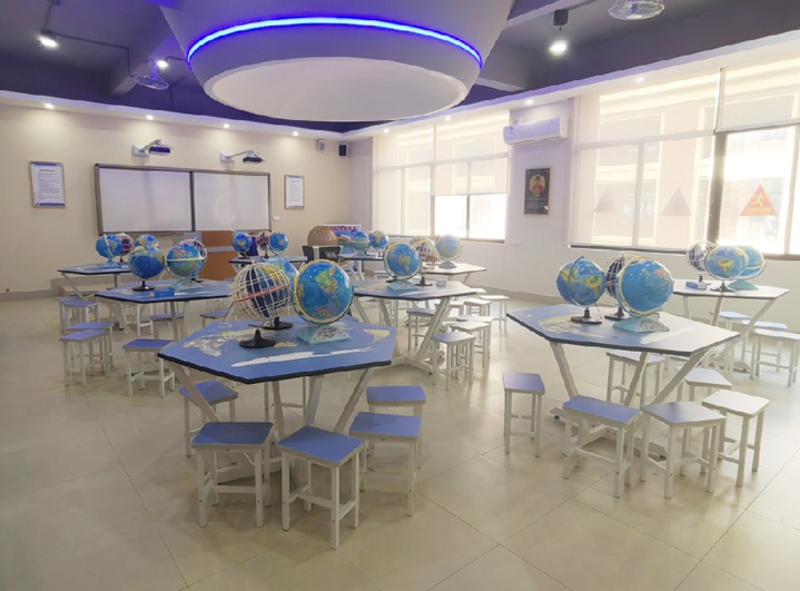 启智教学家具针对本校的地理室、历史室、音乐室、语言室、美术室、综合实践室、化学实验室等开展家具配套设计,具体的实景图如下: