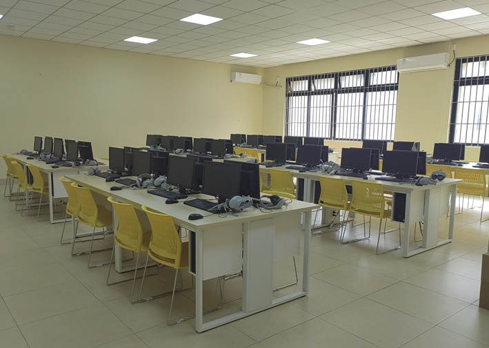 商外语实验学校在家具配套方面,针对各个专业教室有不同的设计和配置要求,以确保学生能在专业、舒适的环境中学习和实践。